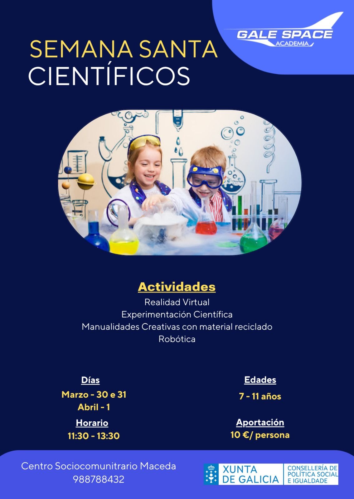 Serán os días 30 e 31 de marzo e 1 de abril de 2026 en horario de 11:30 a 13:30h para nenos de idades entre os 7 e 11 anos